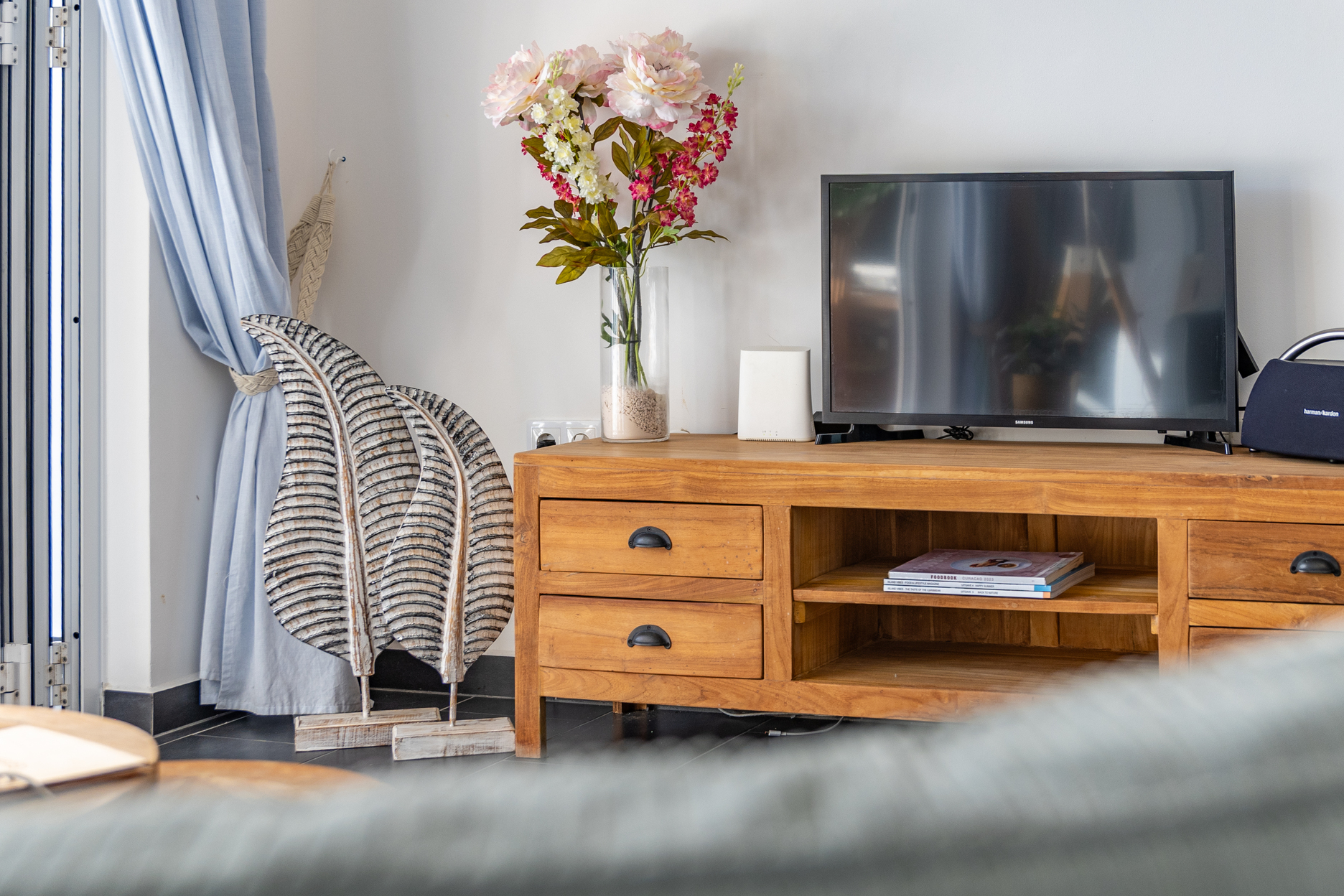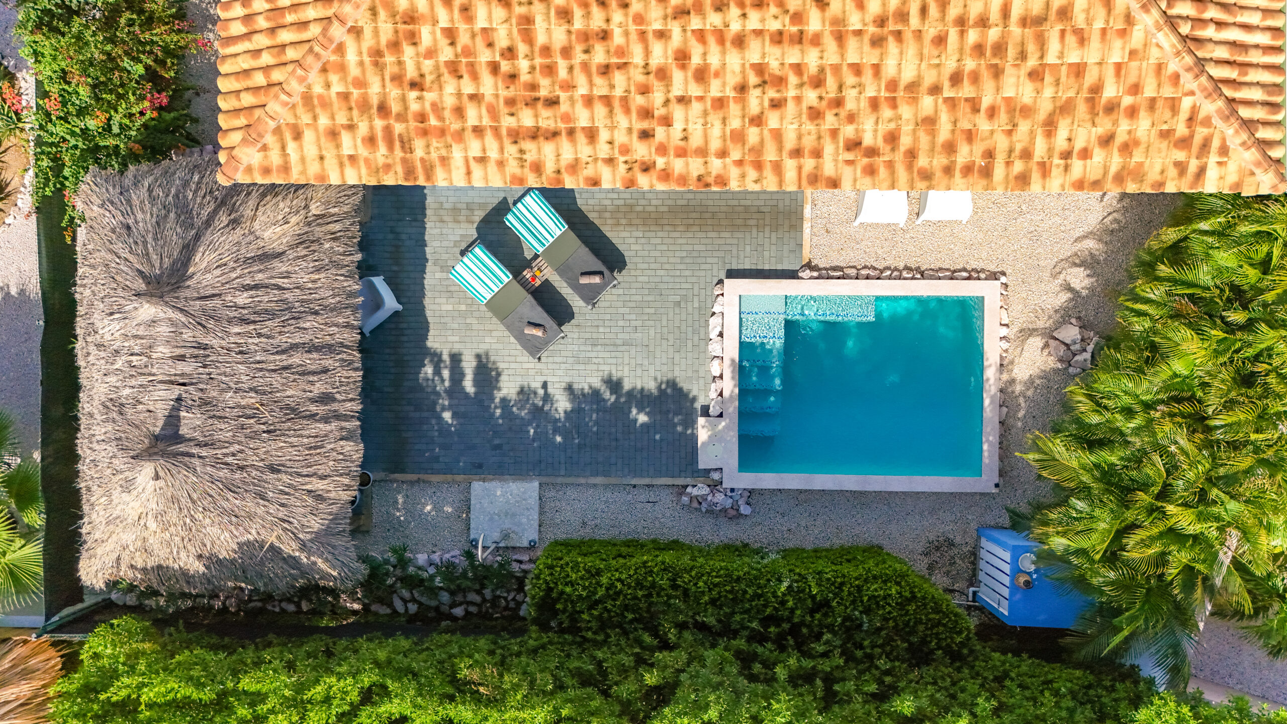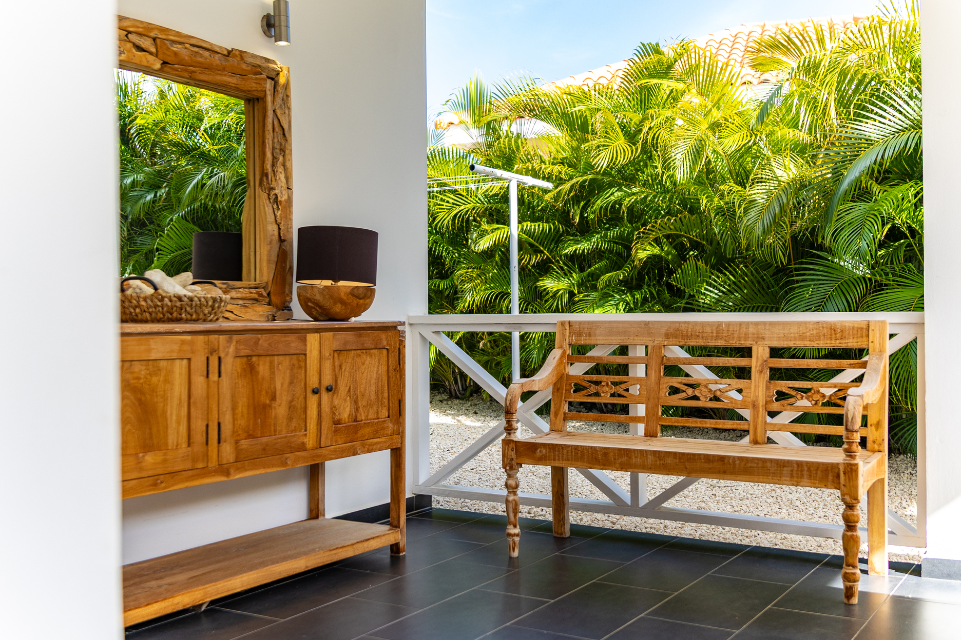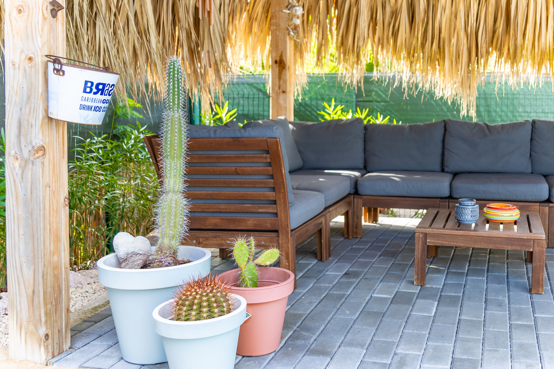 In de tuin kunt u ook heerlijk zitten op de loungebank onder onze gezellige palapa. Er staat een grote BBQ tot uw beschikking. Tevens is er een wasmachine aanwezig waar u gebruik van kan maken.