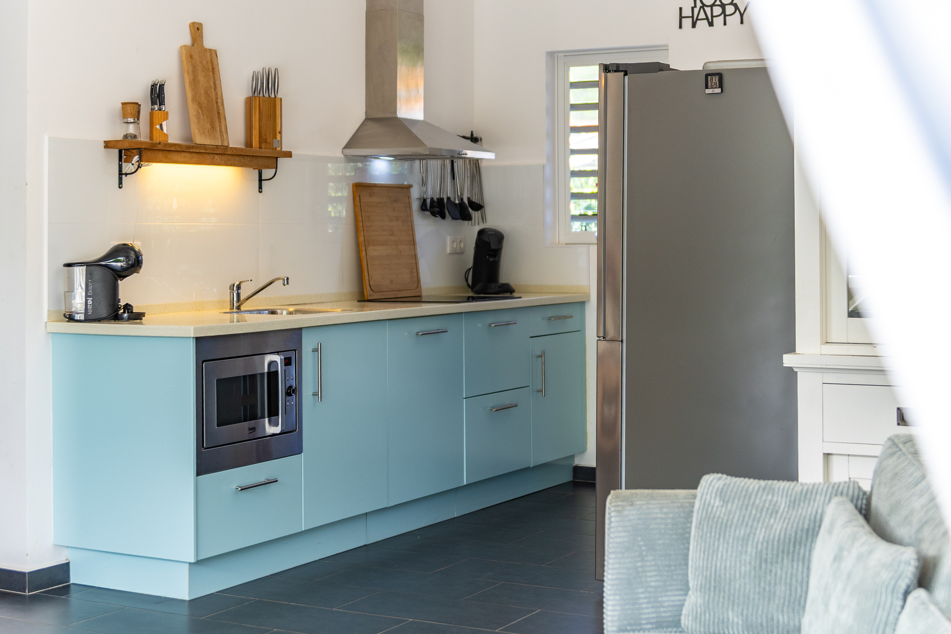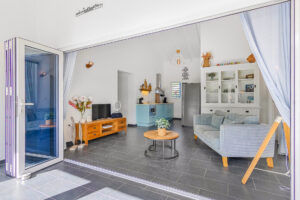 De villa is geschikt voor (max) 6 personen. Het woonoppervlak is 120m2 en bestaat uit een living met een moderne luxe open keuken die voorzien is van diverse apparatuur waaronder een combi-oven, een vaatwasser en een Amerikaanse koelkast.